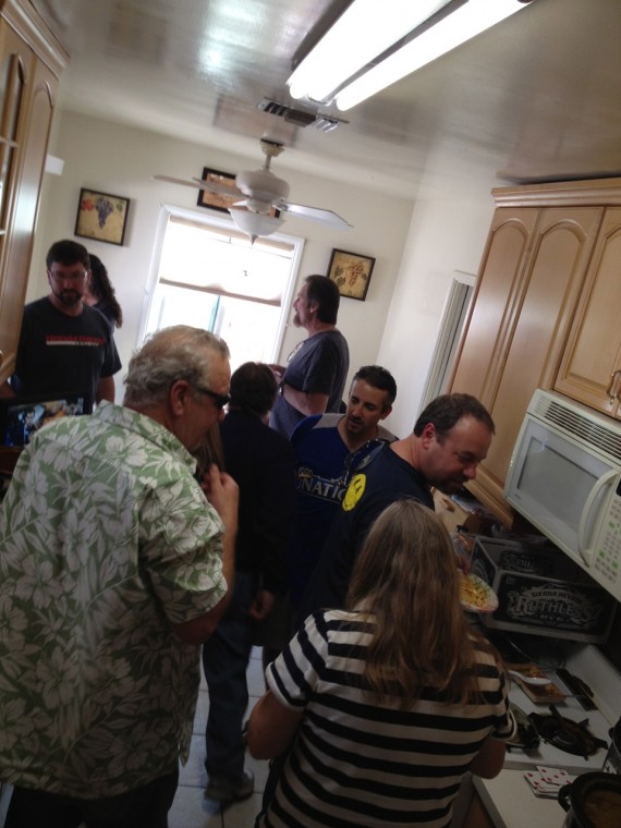 It’s always a great time at this party hosted by my husband’s (and now my) good old friends. We actually only see them once a year on Superbowl Sunday. Now that we have kids, they have been coming with us since they were born. Many of the adults bring their children who, oddly, are all boys. This year the kids played Mario Kart and watched Mine Craft videos on YouTube, sneaking out only to get more fistfuls of Doritos. The adults watched the game (and the commercials and the rocking halftime show) on one of six screens the hosts set up in the living room, the kitchen, the backyard, and the converted garage.