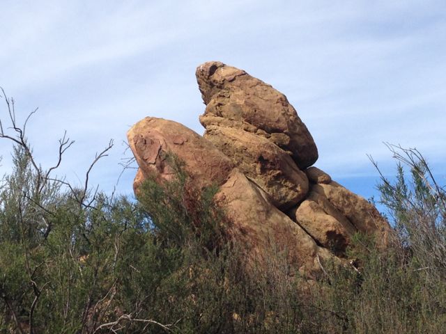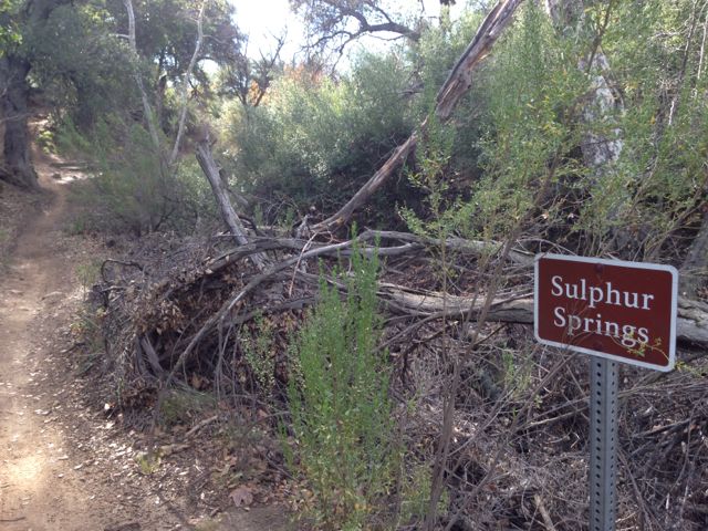 We turned right and headed quickly left up the very steep fire road which takes you to Chesebro Canyon trail, through a wooded area and a non-smelly spot called Sulphur Springs. The terrain along this trail changes from rolling meadow, to oak covered creekside, to rocky desert. It’s breathtaking.