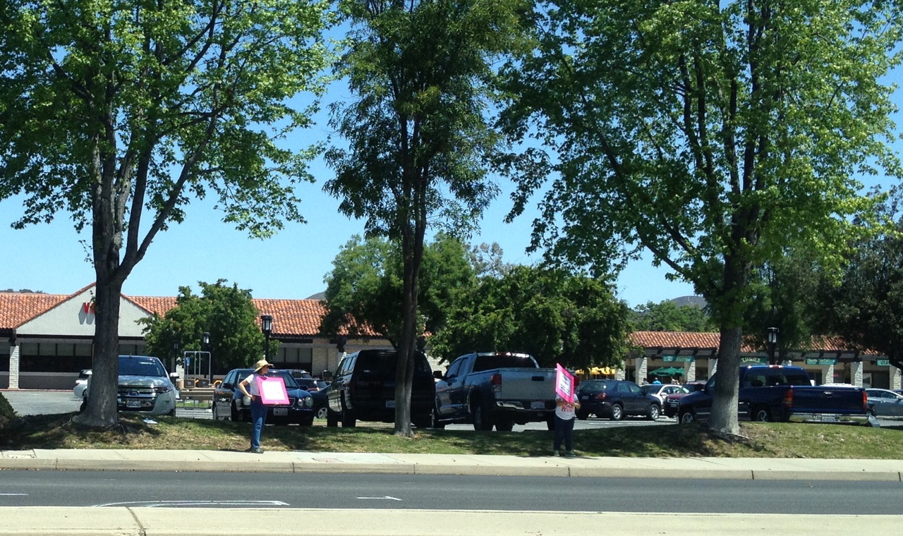 And here is a photo of the intrepid ladies outside Vons on Agoura Road in Westlake Village who were protesting the use of GMO’s in Kellogg’s products. I had read about their protest in The Acorn, and thought I’d drop by to check out the throngs of angry protesters. There were only two here when I drove by, and they just seemed tired.