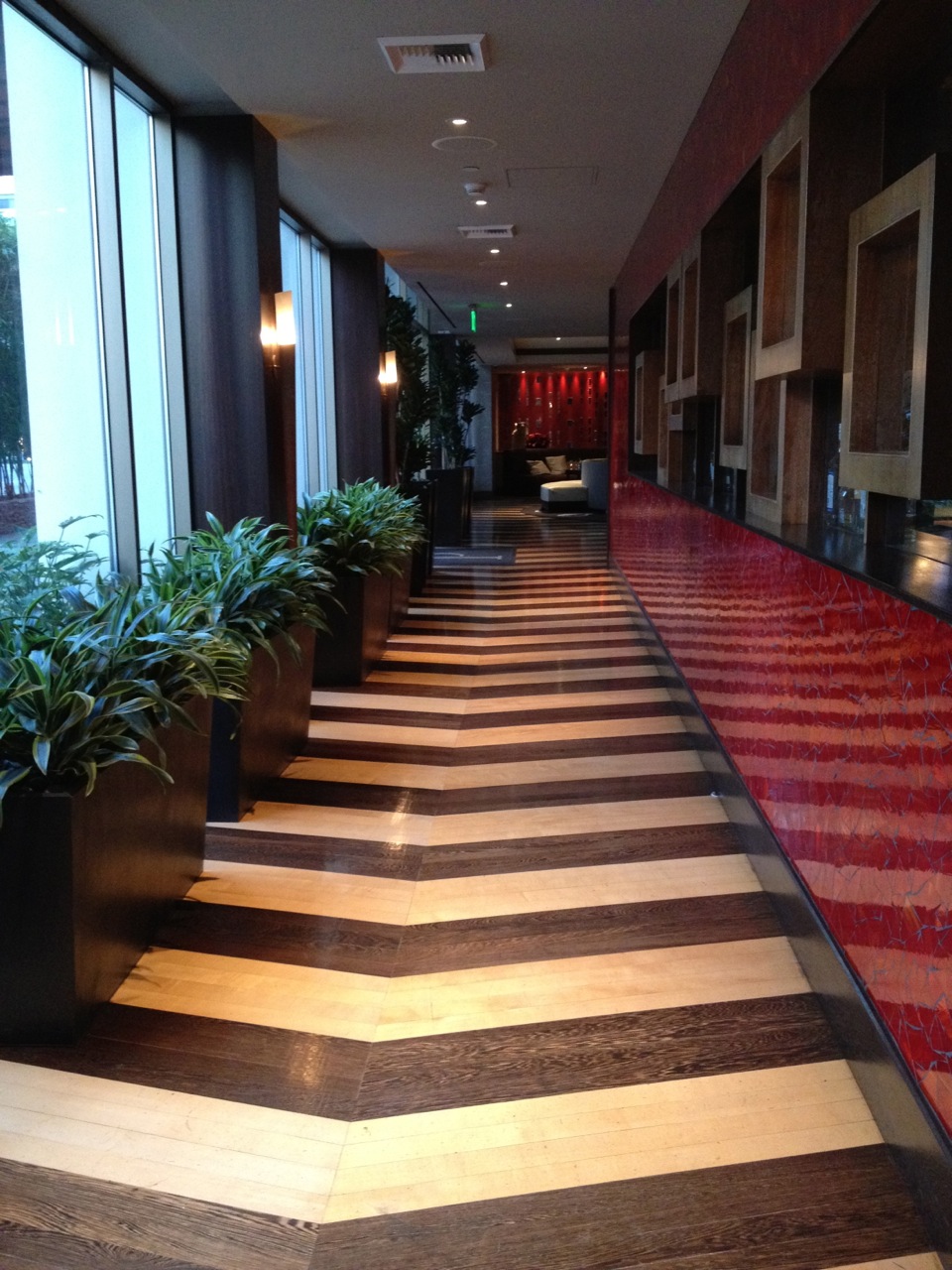 On Saturday night three of my friends and colleagues and I drove down to Hotel Palomar in Westwood for a three-hour blogging event sponsored by Invisalign. We didn’t venture up to see the rooms but I took a moment to appreciate the hotel’s streetside and lobby hallway. I love hotels. I should amend that to say I love nice hotels.