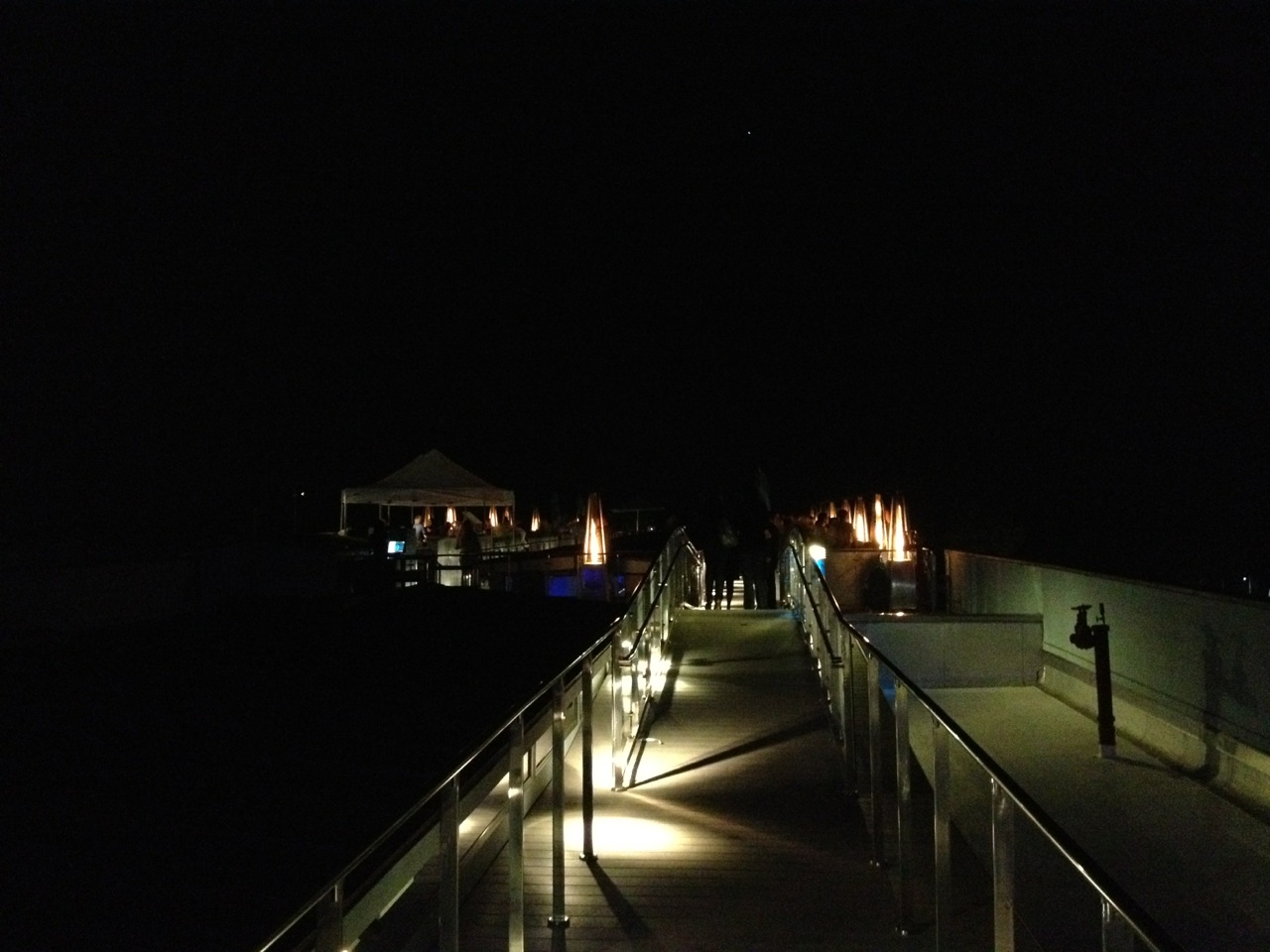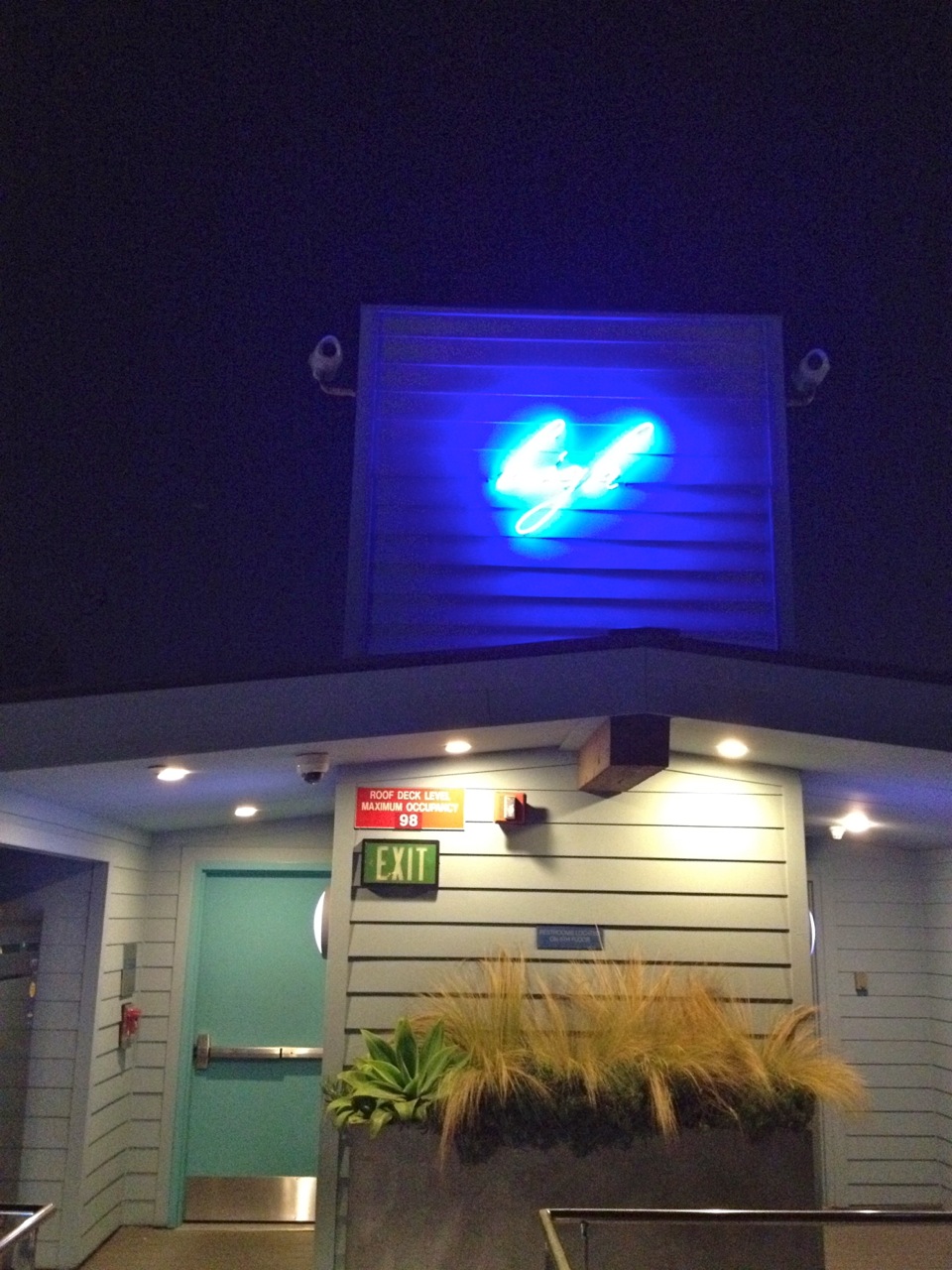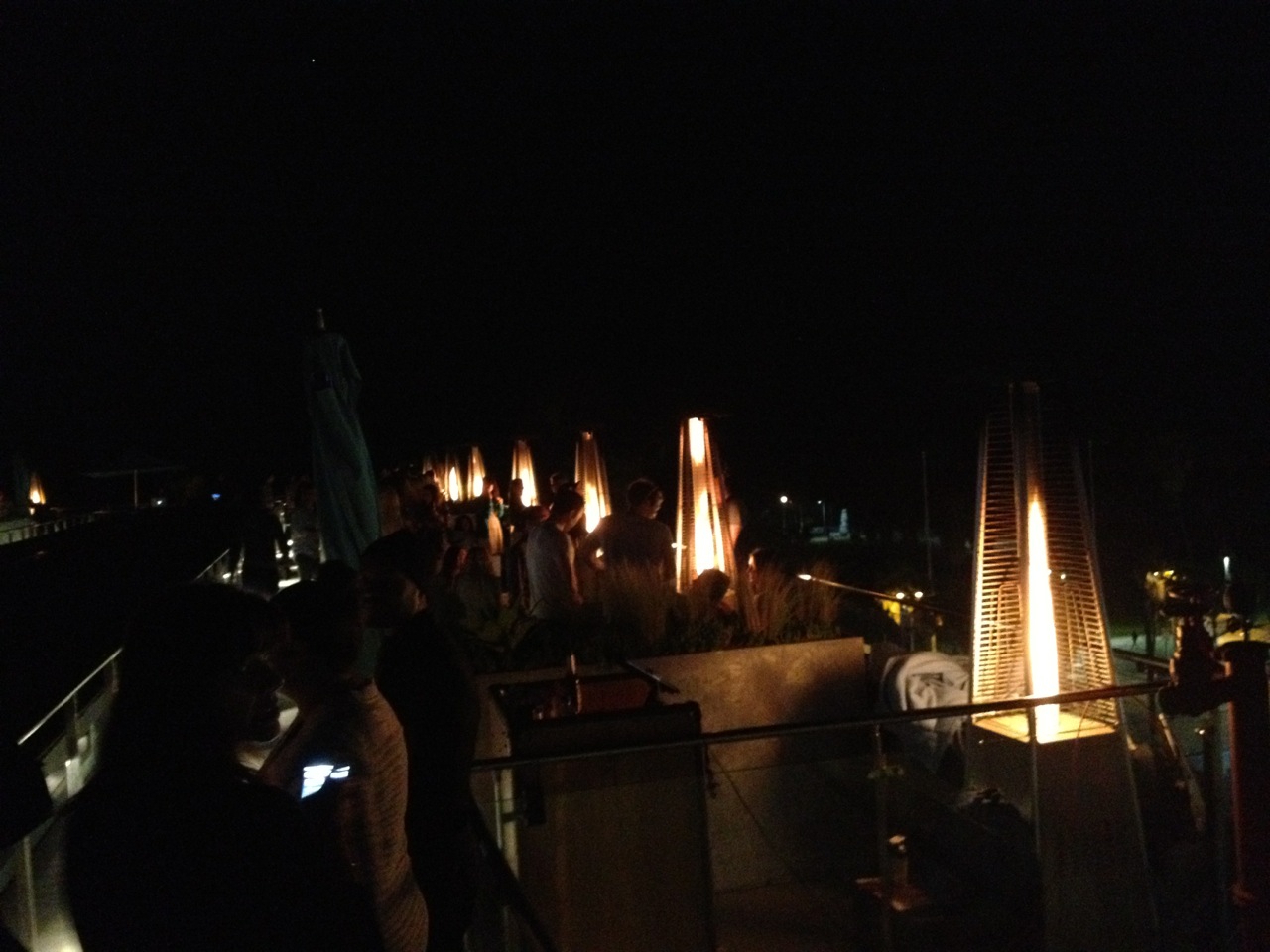 After our event at Hotel Palomar, we snaked through the streets of West LA and down Lincoln to Hotel Erwin at Windward Circle in Venice to meet our pal and colleague who was in town for CicLAvia. She was showing off the app she represents, called Field Trip. We took the elevator to the roof and enjoyed some tasty drinks at the hotel’s bar called “High.” The view of the city was great, and though the flaming heat lamps were fired up, it was pretty chilly up there.